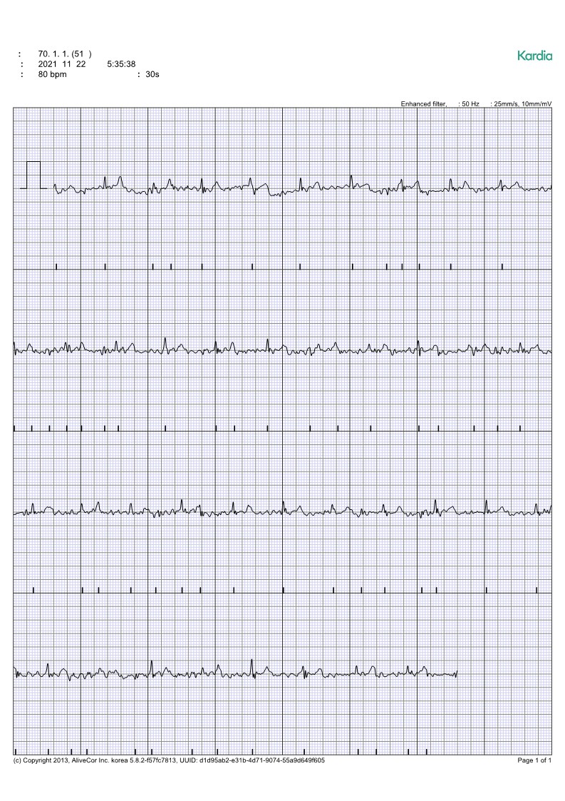| 내과방문 12극 심전도 측정, pm5시15분경 전혀 이상무(맥박은 84로 약간 빠름) |